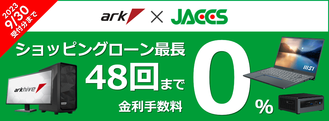 ドスパラやパソコン工房と同じくジャックスのショッピングローンでの分割購入で、最大48回まで金利手数料0%で購入可能です。